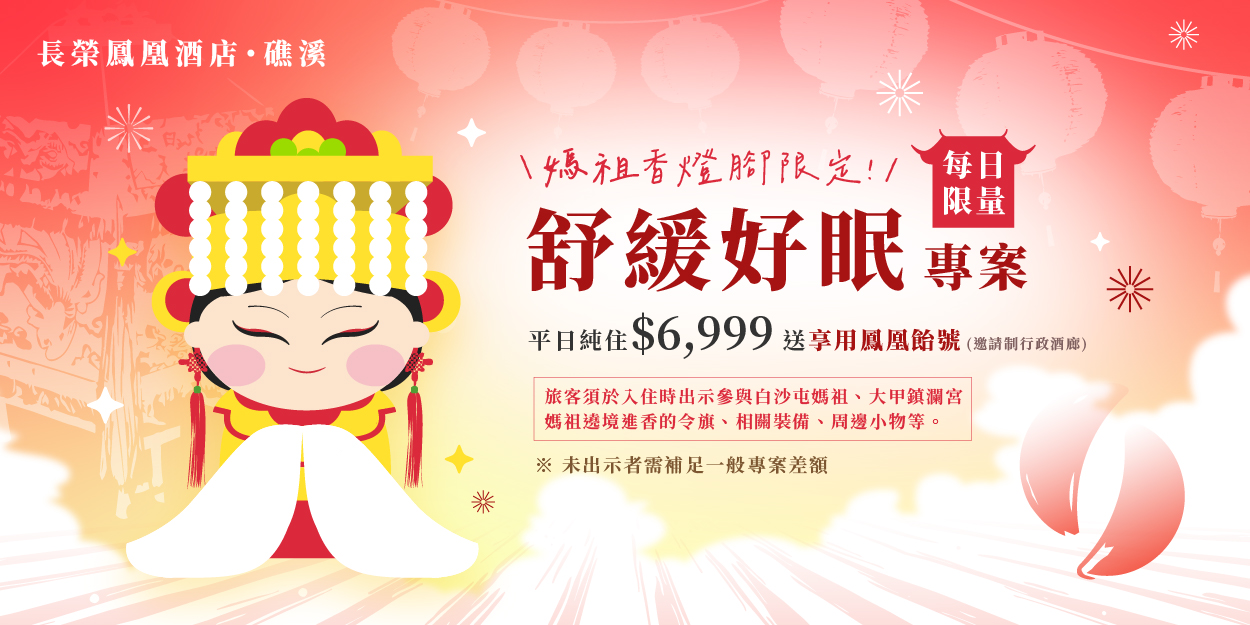 在朝聖的步履後,值得一晚被好好照顧的時光。入住長榮鳳凰酒店(礁溪)「香燈腳限定-舒緩好眠」純住專案,讓疲憊慢慢沉澱、身心自在放鬆。