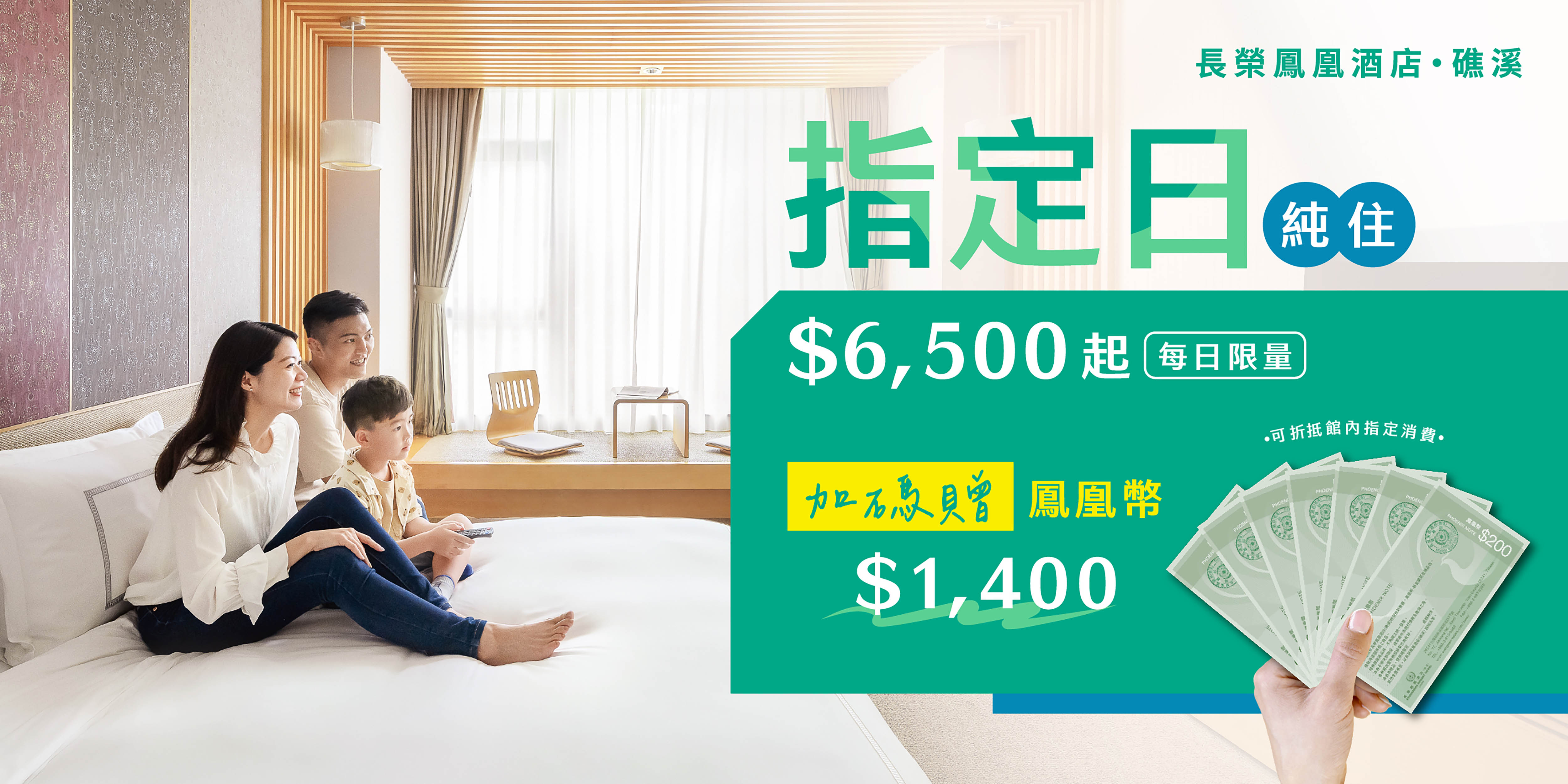 把握限時優惠安排一趟春日礁溪小旅行,於2026/4/27起指定日入住,雙人純住優惠價$6,500起,再贈鳳凰幣$1,400(可折抵館內消費)。